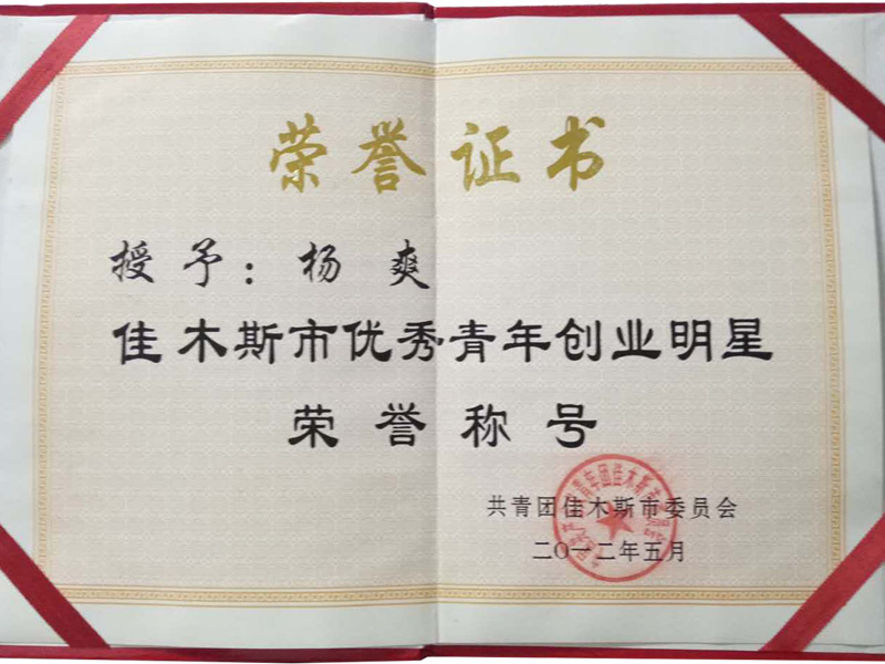 2012.5共青团佳木斯市委员会授予佳木斯市优秀青年创业明星