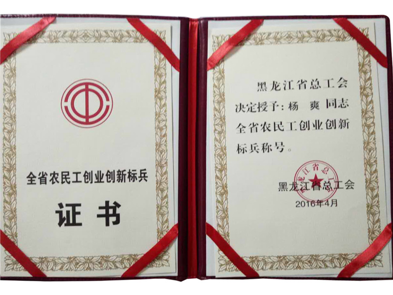 2016.4黑龙江省总工会授予全省农民工创业创新标兵称号