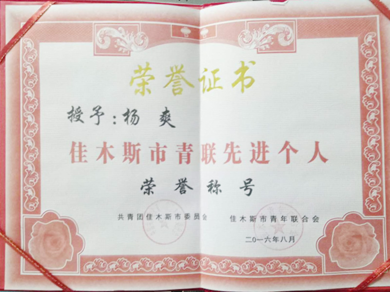 2015年度--佳木斯市青年商会--杰出会员--杨爽