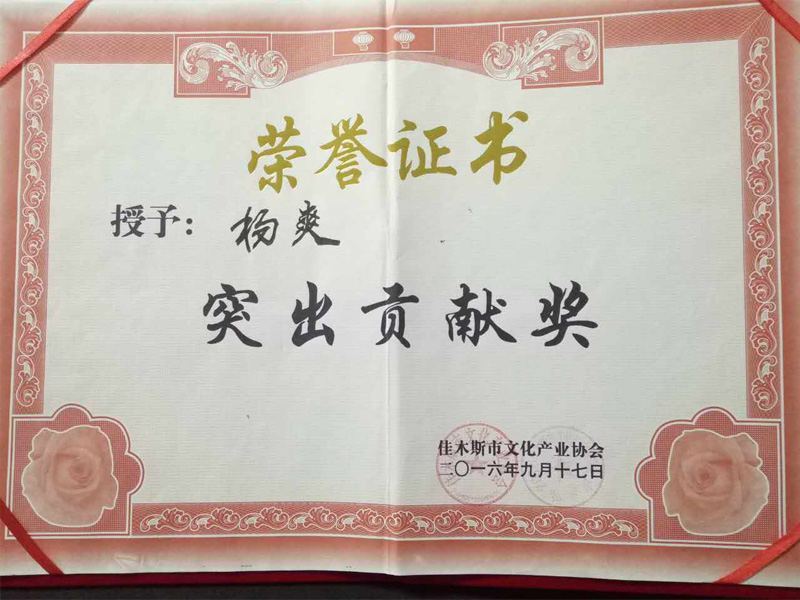 2016.9.17-佳木斯市文化产业协会授予突出贡献奖